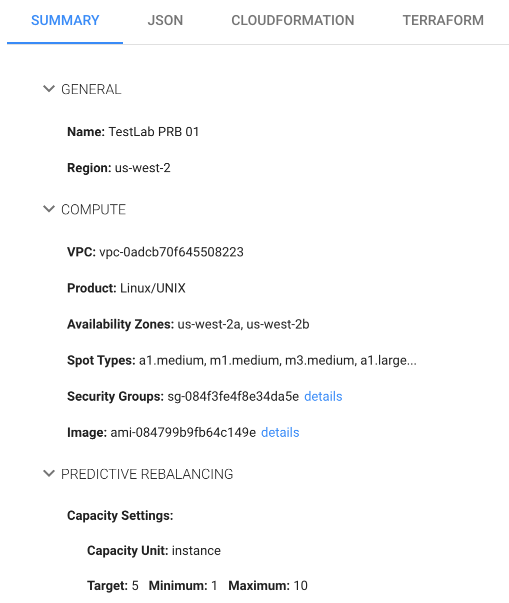 • Continuous Optimization: If fallback to on-demand instances has occurred, you can choose when your workload should be returned to spot instances or moved to an instance type that has already-purchased an available reserved capacity. Switch this On (default) to return the instances automatically.